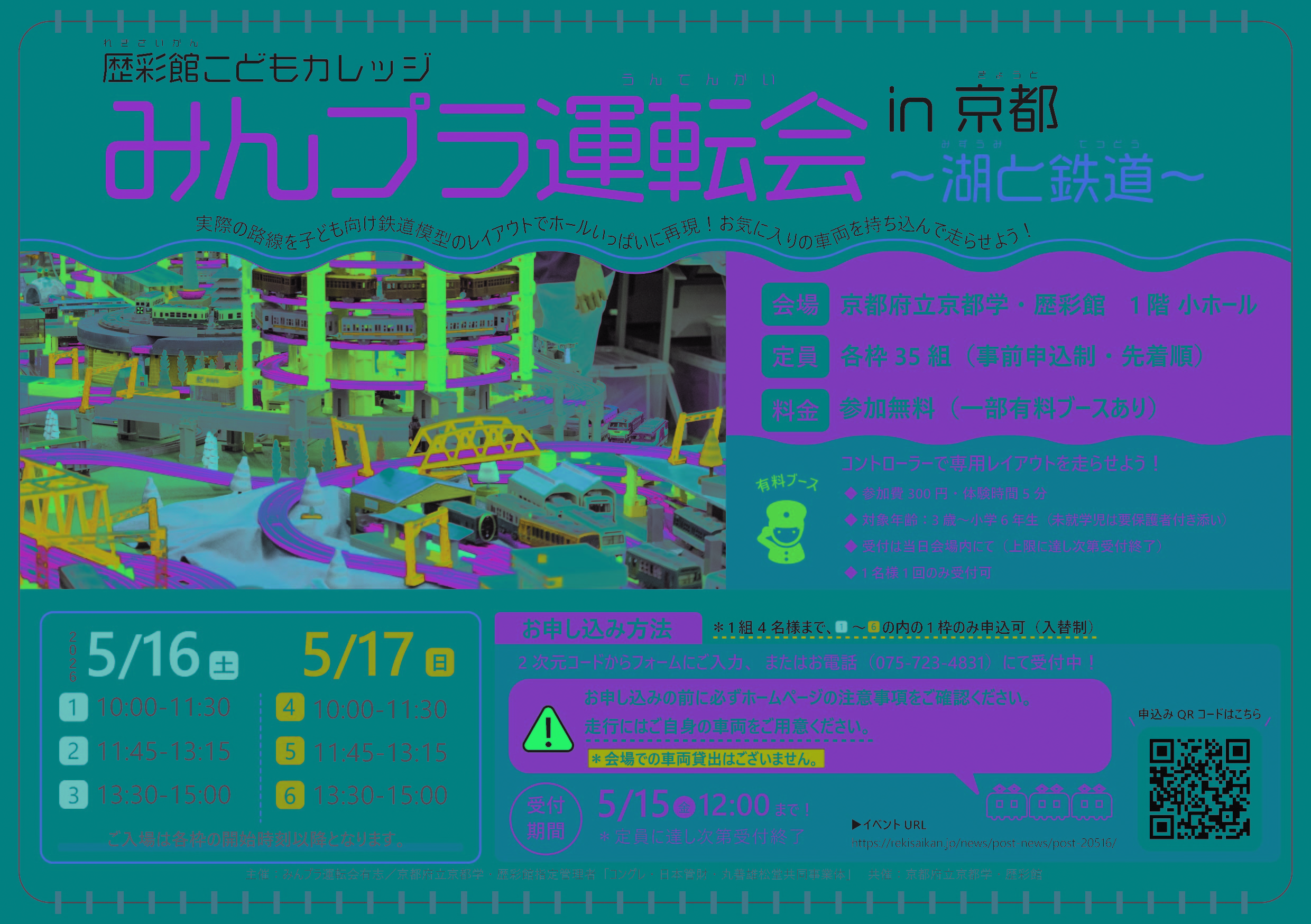 【イベント】歴彩館こどもカレッジ 「みんプラ運転会 in 京都 ~湖と鉄道~」