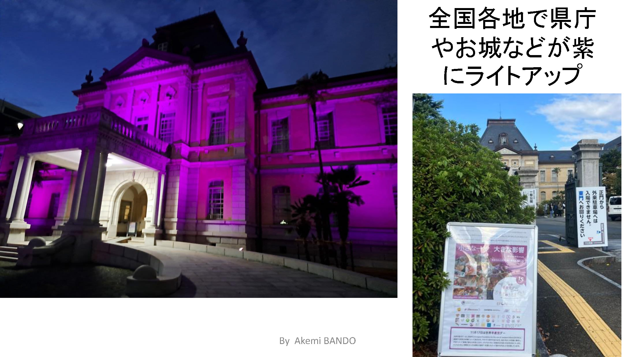11月17日は世界早産児デーで、全国各地で県庁やお城などが紫にライトアップされているそうです。