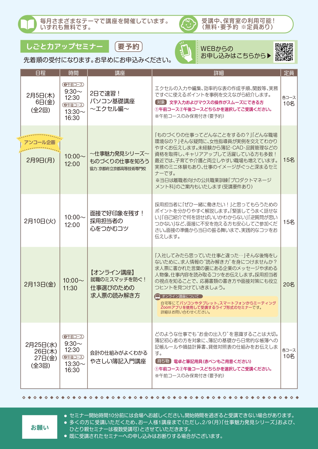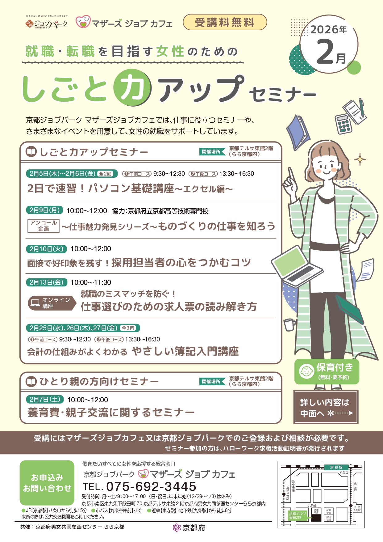 京都ジョブパークマザーズジョブカフェでは、仕事に役立つセミナーや、さまざまなイベントを用意して、女性の就職をサポートしています。