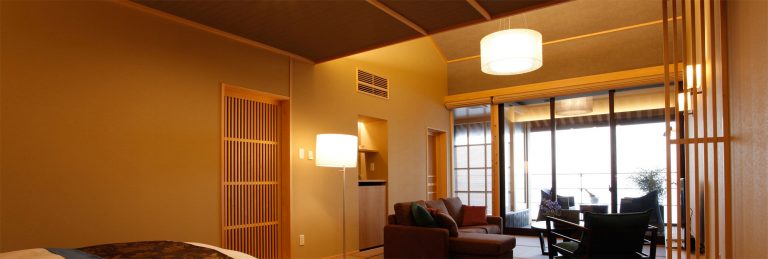 ビューの天然温泉露天風呂付ベッドルームの旅館
