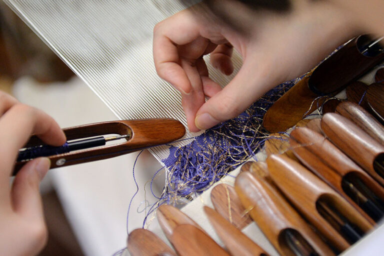 - 製品は、主に西陣爪搔本つづれ織を用いて、